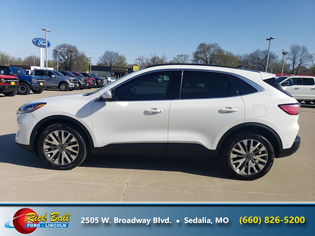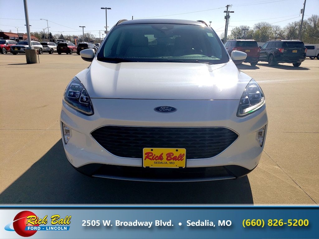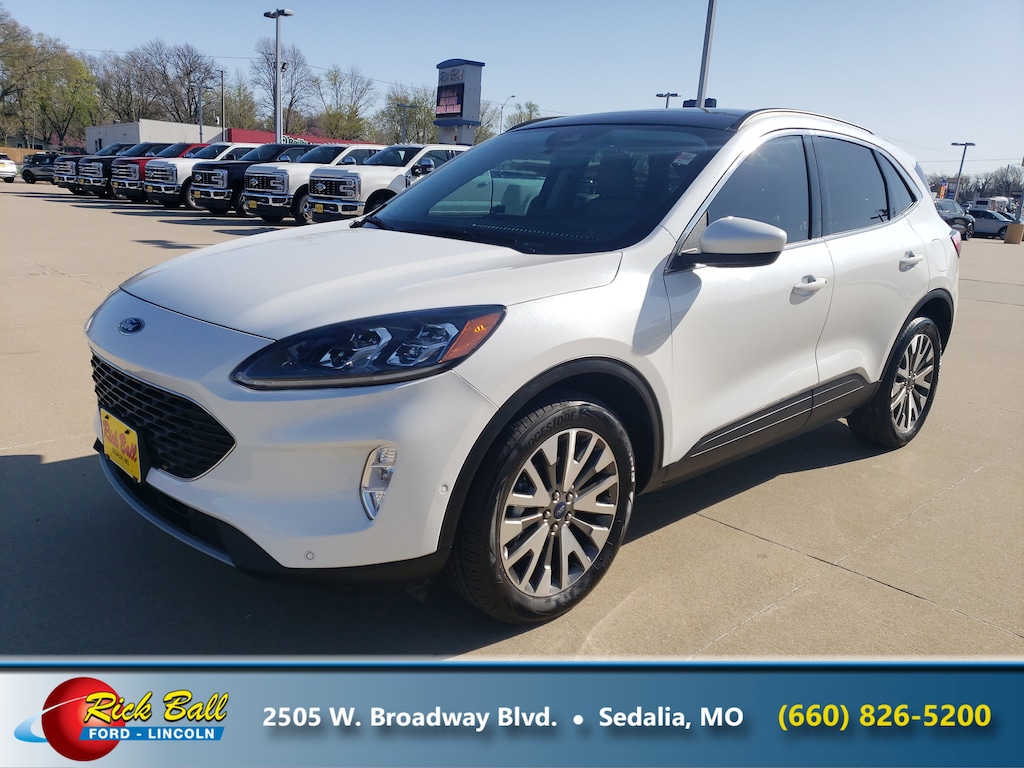 Look at this 2021 Ford Escape Titanium. Its Automatic transmission and Intercooled Turbo Premium Unleaded I-4 2.0 L/122 engine will keep you going. This Ford Escape comes equipped with these options: ENGINE: 2.0L ECOBOOST -inc: auto start-stop technology (STD), Wheels: 19" Machined-Face Aluminum -inc: dark tarnished-painted pockets, Voice-Activated Touchscreen Navigation System -inc: pinch-to-zoom capability, SiriusXM Traffic and Travel Link, SiriusXM Traffic and Travel Link includes a 5 year prepaid subscription, After your trial period ends, SiriusXM audio and data services each require a subscription sold separately, or as a package, by SiriusXM Radio Inc, See SiriusXM customer agreement for complete terms at www.siriusxm.com, All fees and programming subject to change, Valet Function, Trunk/Hatch Auto-Latch, Trip Computer, Transmission: 8-Speed Automatic, Transmission w/Driver Selectable Mode and Oil Cooler, Tracker System, and Tires: 225/55R19 AS BSW. See it for yourself at Rick Ball Ford Lincoln Sedalia, 2505 West Broadway Boulevard, Sedalia, MO 65301.