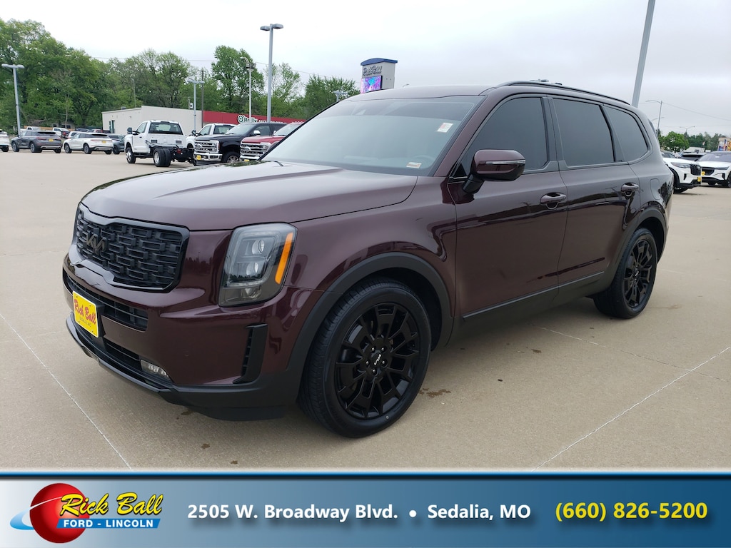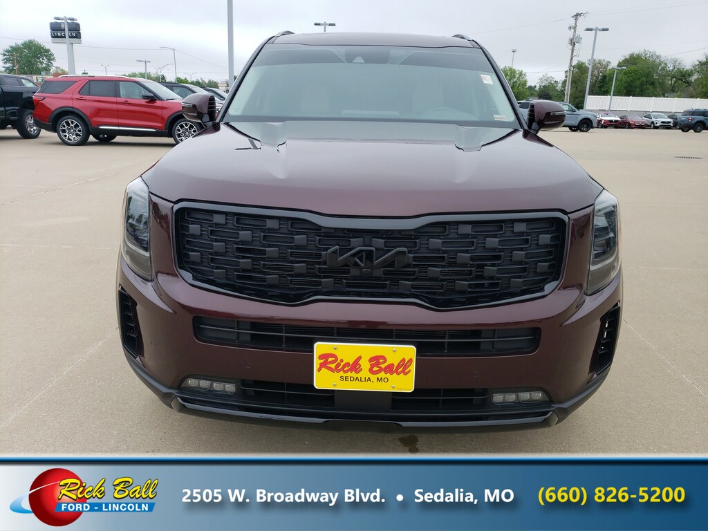 Come see this 2022 Kia Telluride SX. Its Automatic transmission and Regular Unleaded V-6 3.8 L/231 engine will keep you going. This Kia Telluride features the following options: CARPETED FLOOR MATS, Vehicle Stability Management (VSM) Electronic Stability Control (ESC), Variable Intermittent Wipers, Trunk/Hatch Auto-Latch, Trip Computer, Trailer Wiring Harness, Towing Equipment -inc: Trailer Sway Control, Tire Specific Low Tire Pressure Warning, Tailgate/Rear Door Lock Included w/Power Door Locks, and Strut Front Suspension w/Coil Springs. See it for yourself at Rick Ball Ford Lincoln Sedalia, 2505 West Broadway Boulevard, Sedalia, MO 65301.