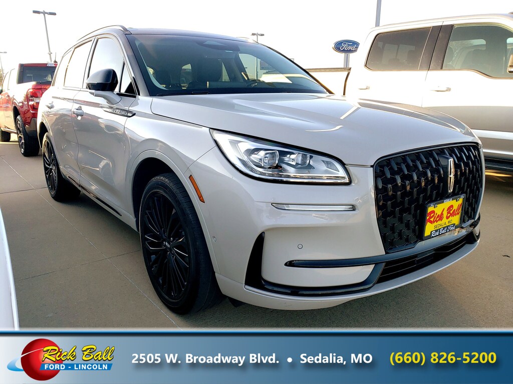 Check out this 2023 Lincoln Corsair Reserve. Its Automatic transmission and Intercooled Turbo Premium Unleaded I-4 2.0 L/122 engine will keep you going. This Lincoln Corsair comes equipped with these options: ENGINE: 2.0L TURBOCHARGED I-4 -inc: auto start-stop technology (STD), Wheels: 19" Bright Machined Aluminum -inc: Magnetic paint, Voice Activated Dual Zone Front Automatic Air Conditioning w/Steering Wheel Controls, Trunk/Hatch Auto-Latch, Trip Computer, Transmission: 8-Speed Automatic w/SelectShift -inc: 8F35, Transmission w/Driver Selectable Mode and Oil Cooler, Tires: 225/55R19 All-Season BSW, Tire Specific Low Tire Pressure Warning, and Tailgate/Rear Door Lock Included w/Power Door Locks. Stop by and visit us at Rick Ball Ford Lincoln Sedalia, 2505 West Broadway Boulevard, Sedalia, MO 65301.